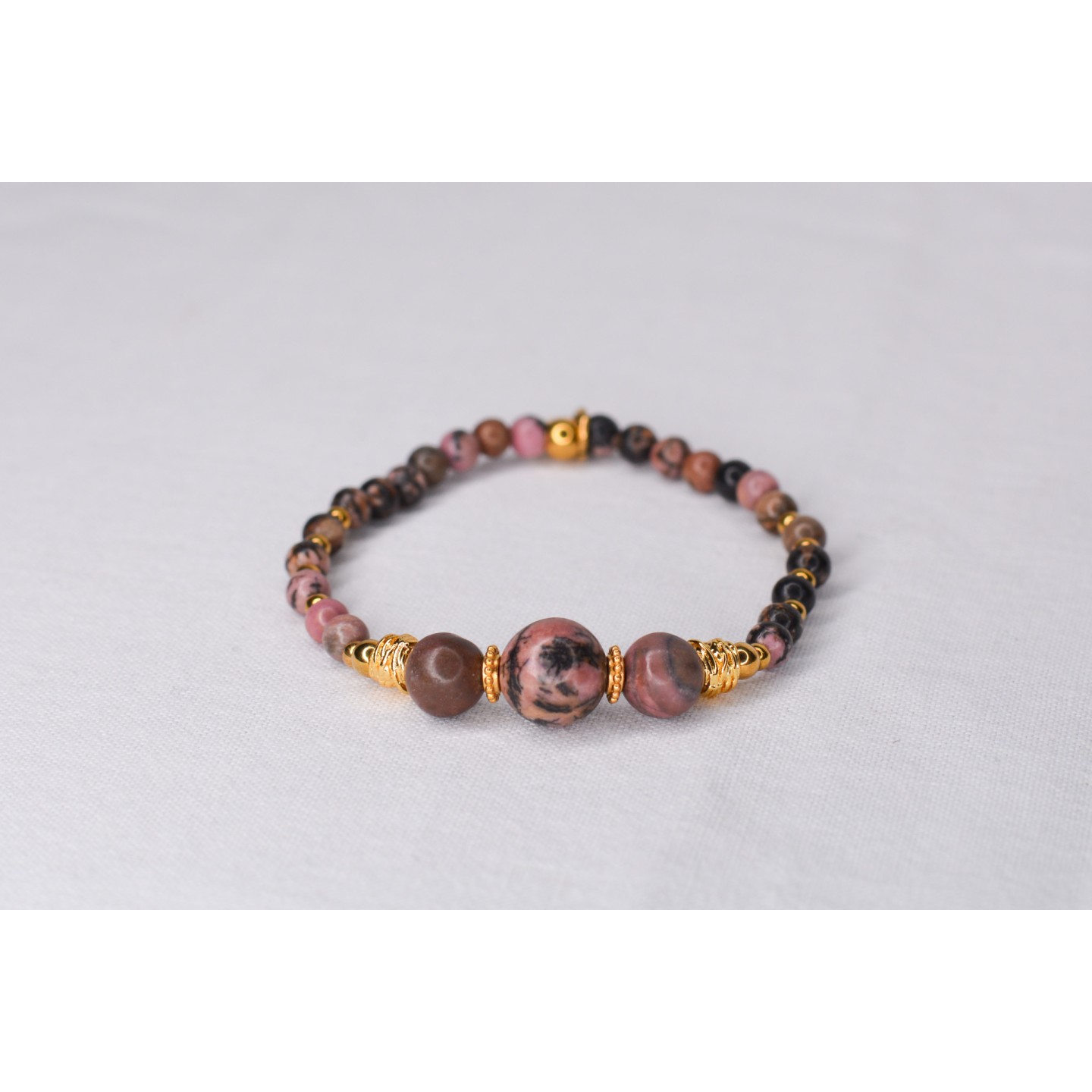 Perles naturelles de Rhodonite, diamètre 4mm, 8mm et 10mm. Acier inoxydable doré. Taille : 15-17cm