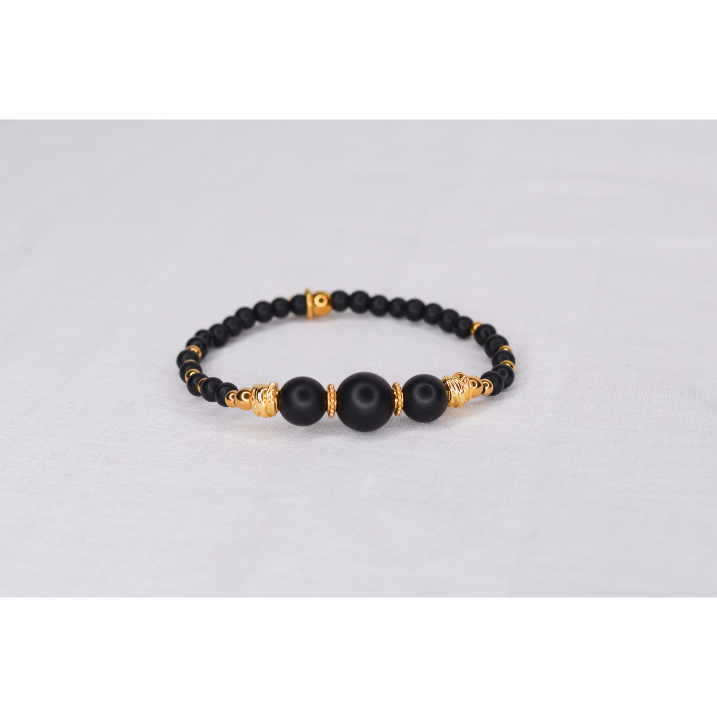 Perles naturelles d'Onyx noir mat, diamètre 4mm, 8mm et 10mm. Acier inoxydable doré. Taille : 15-17cm