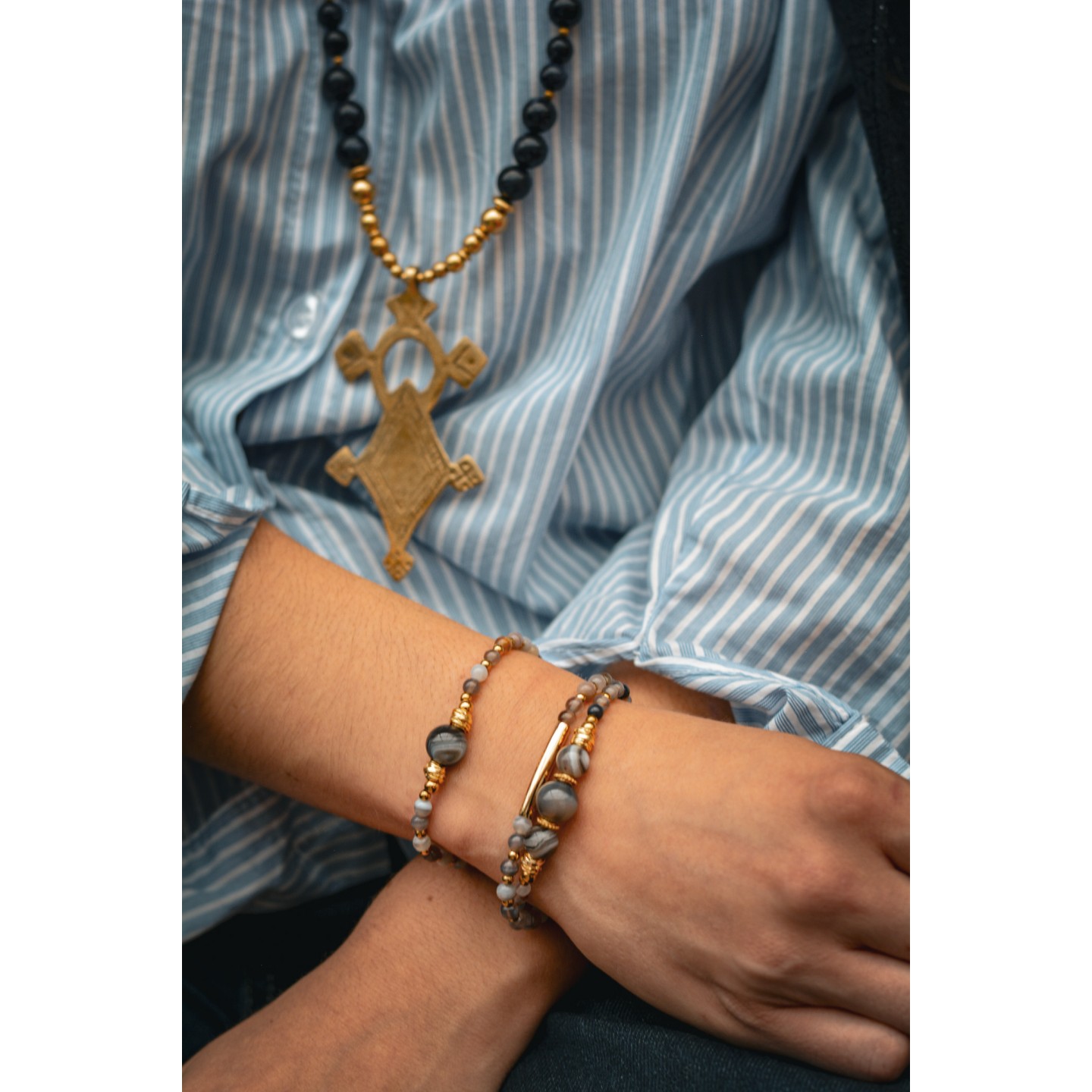 Bracelet LINA simple en Agate Botswana avec motif tube