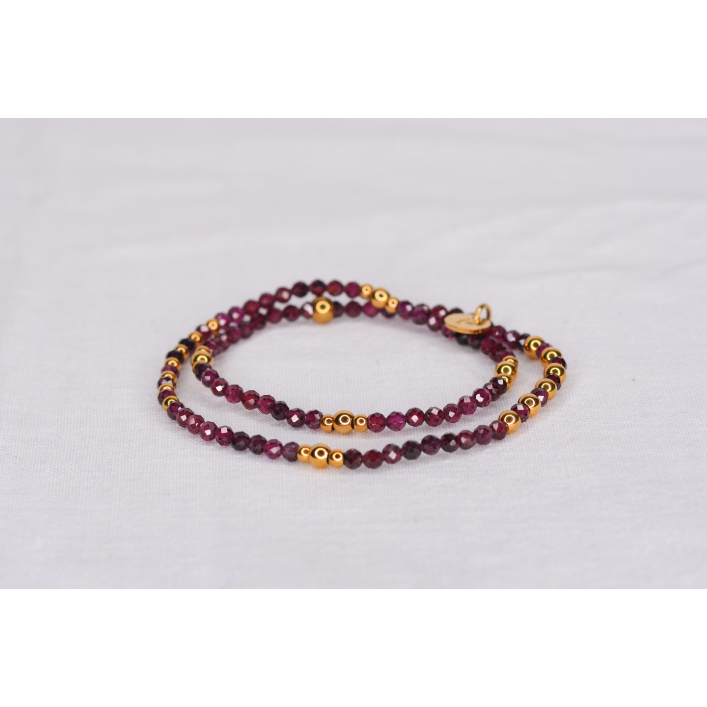 Perles naturelles de Grenat à facettes, diamètre 3mm. Acier inoxydable doré. Taille : 15-17cm