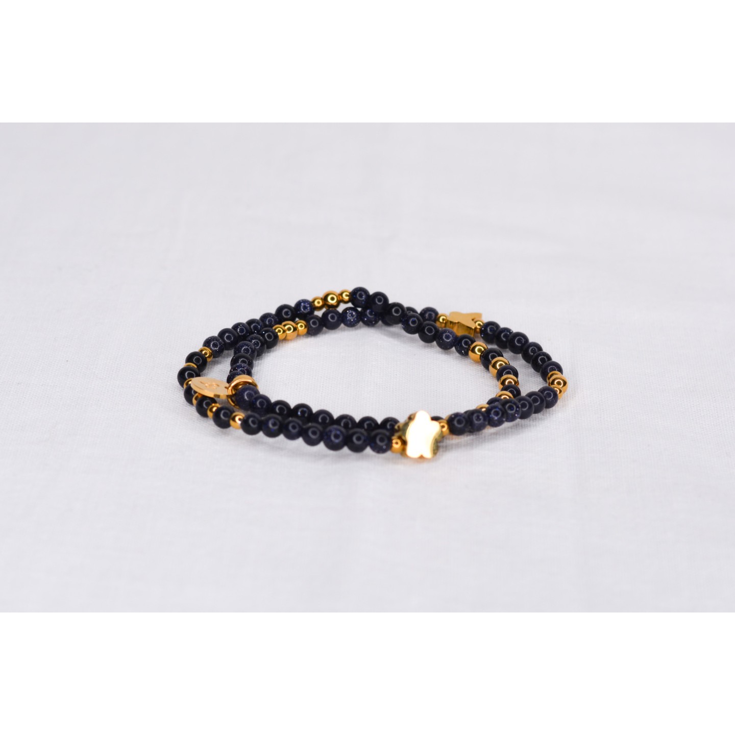 Bracelet LINA double en Blue Sandstone avec motifs papillon et fleur.