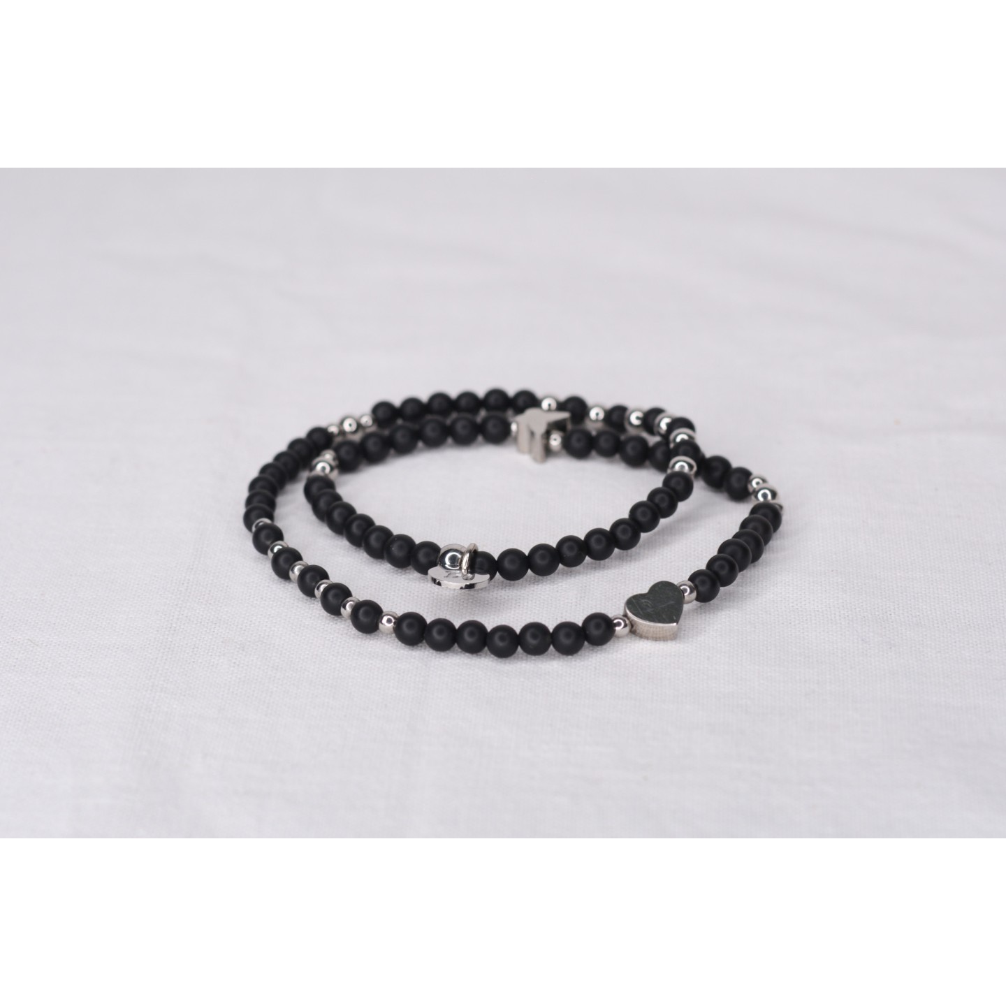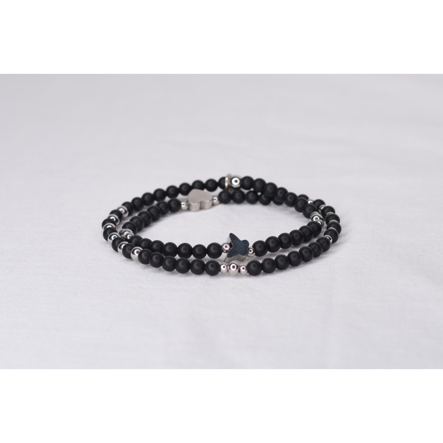 Bracelet LINA double en Onyx mat avec motifs cœur et papillon