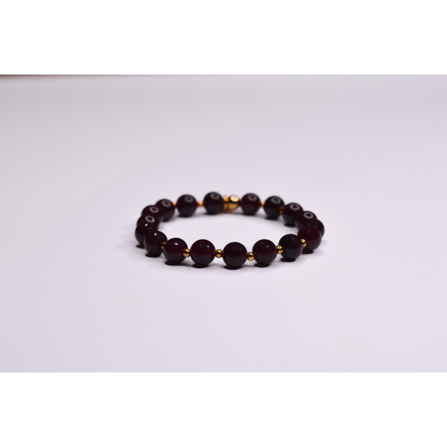 Perles naturelles de Grenat, diamètre 8mm. Acier inoxydable doré. Taille: 15-17cm