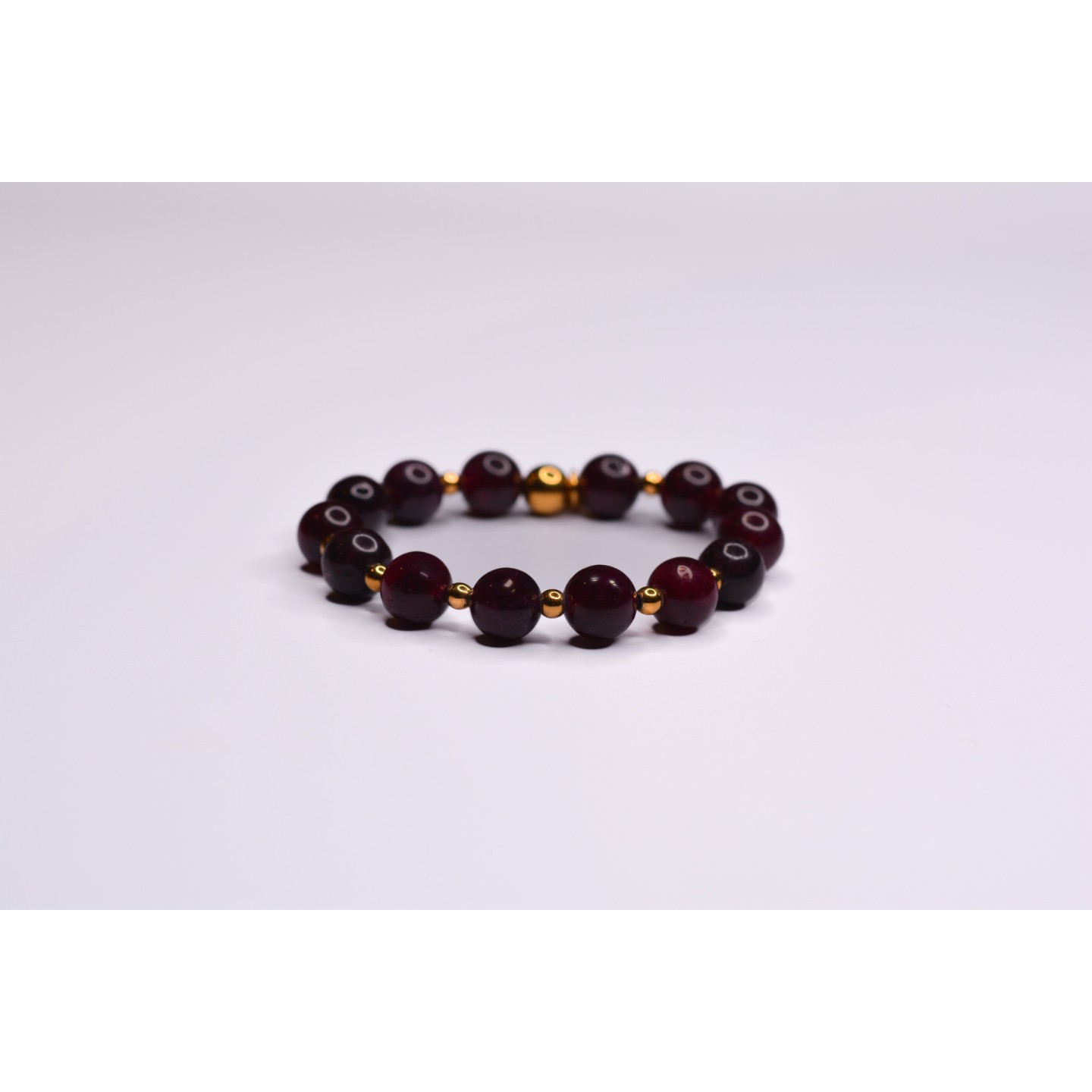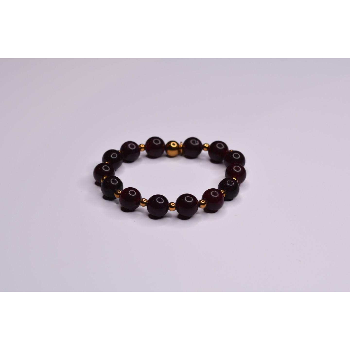 Perles naturelles de Grenat, diamètre 10mm. Acier inoxydable doré. Taille: 15-17cm