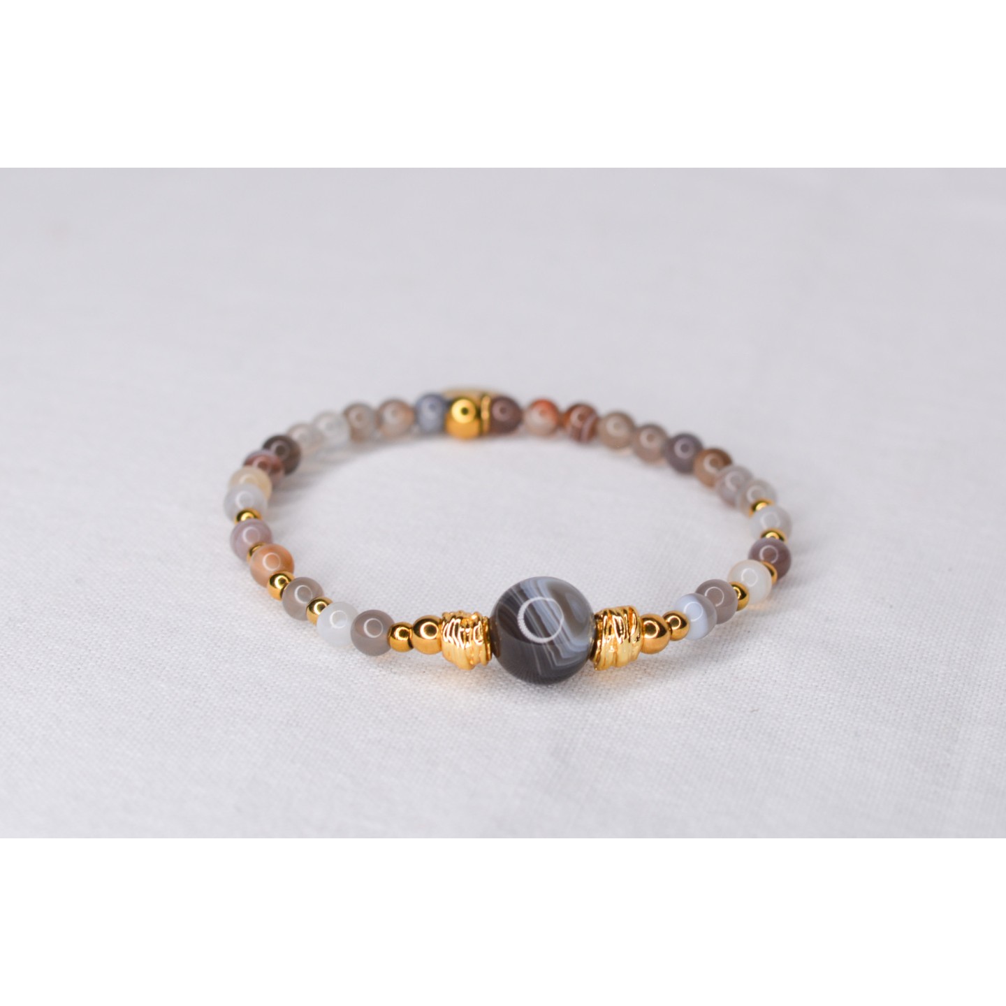 Perles naturelles d'Agate Botswana, diamètre 4mm et 10mm. Acier inoxydable doré. Taille : 15-17cm