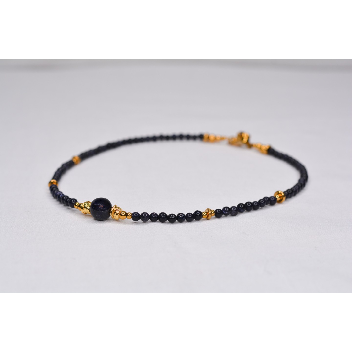 Perles naturelles de Blue Sandstone, diamètre 4mm et 10mm. Acier inoxydable doré. Mesure: 38cm