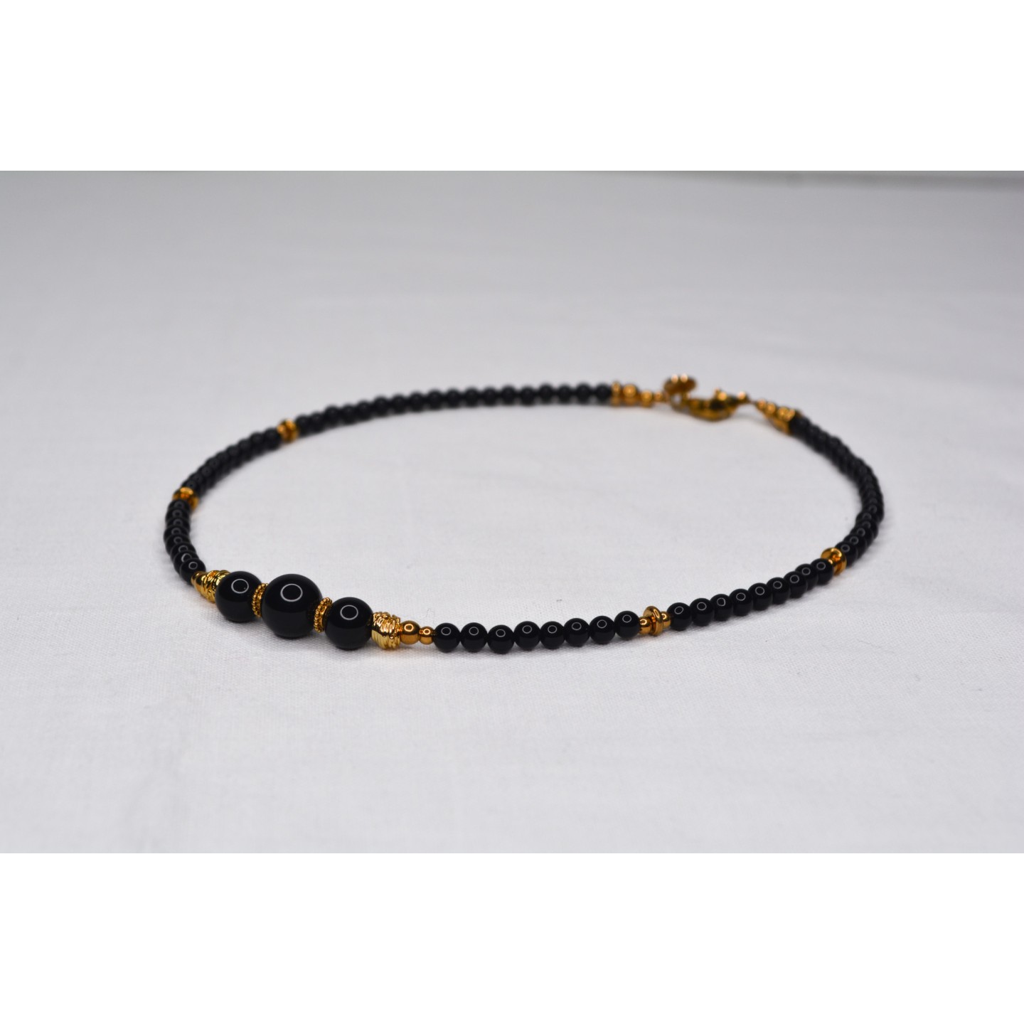 Perles naturelles d'Onyx noir, diamètre 4mm, 8mm et 10mm. Acier inoxydable doré. Mesure: 38cm