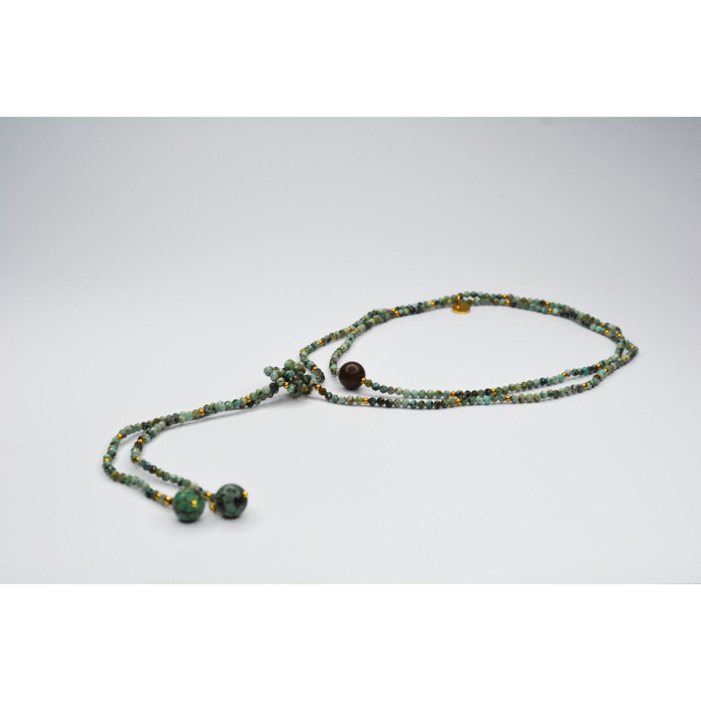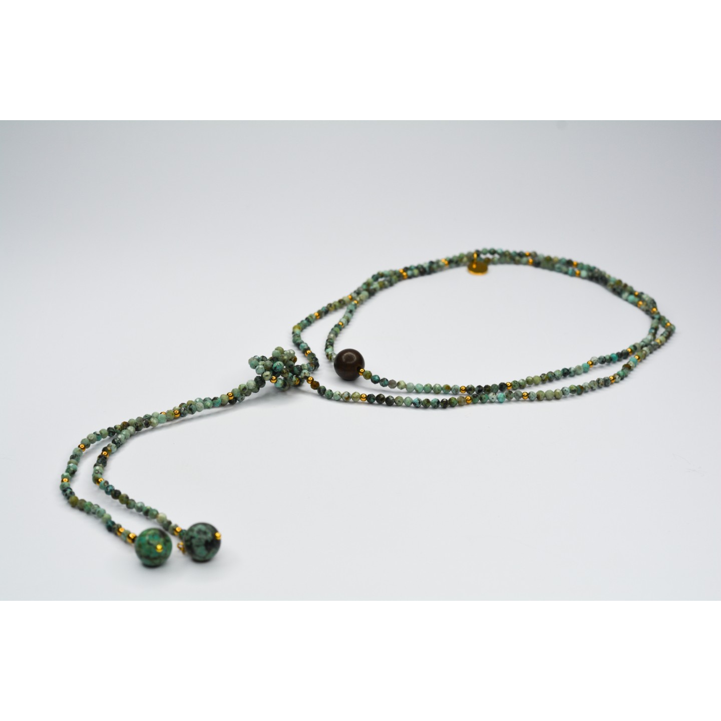 Collier "cravate". Perles naturelles de Turquoise Africaine à facettes, diamètre 3mm et 10mm. Acier inoxydable doré. Mesure: 120cm
