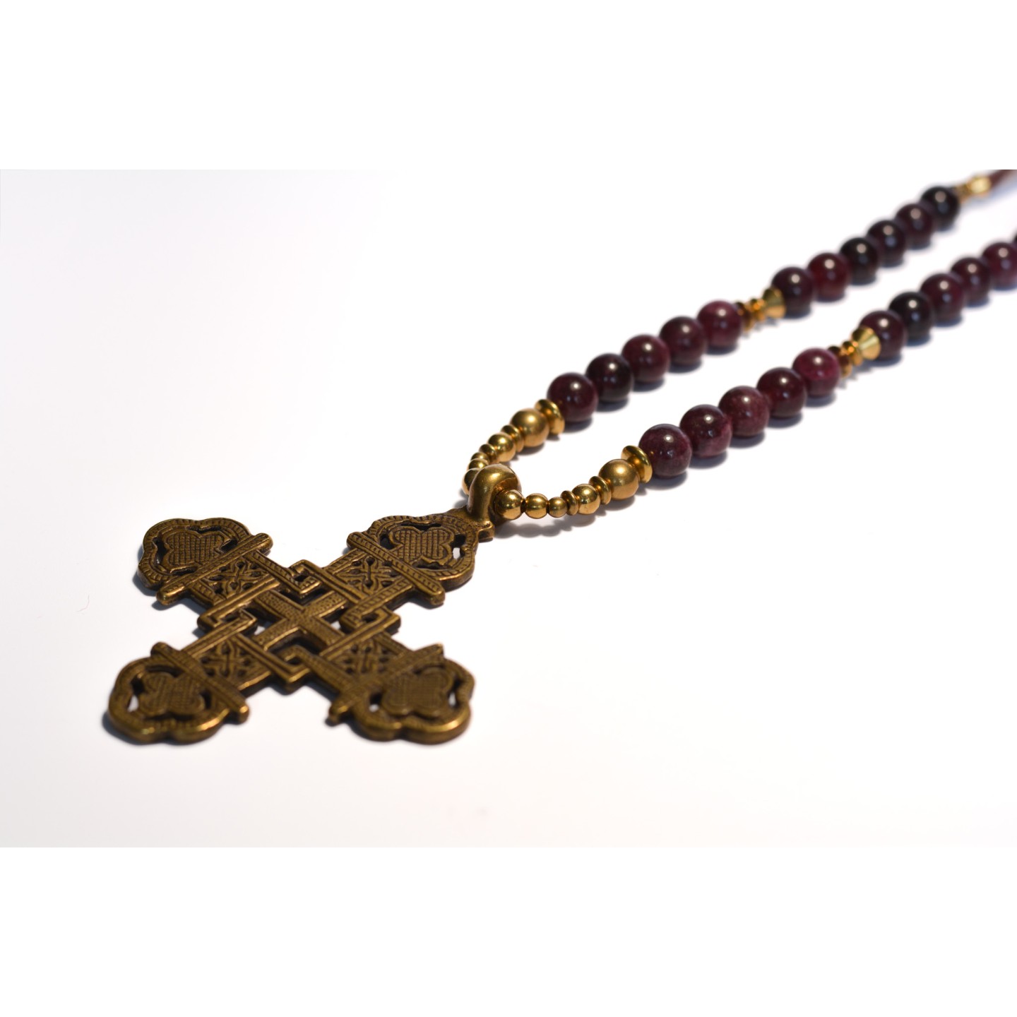 Collier Ethnique Croix Éthiopienne en Grenat