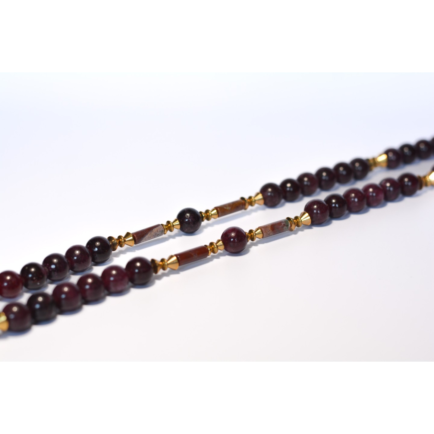 Perles naturelles de Grenat, diamètre 8mm et 10mm. Pendentif: croix éthiopienne en bronze. Montage: laiton. Mesure: 96cm