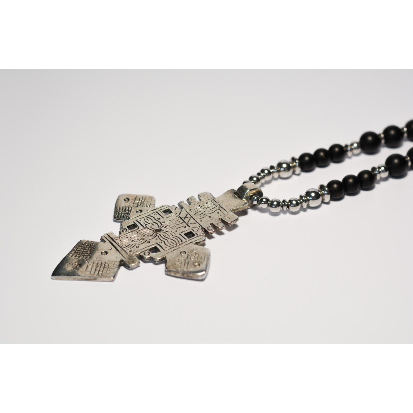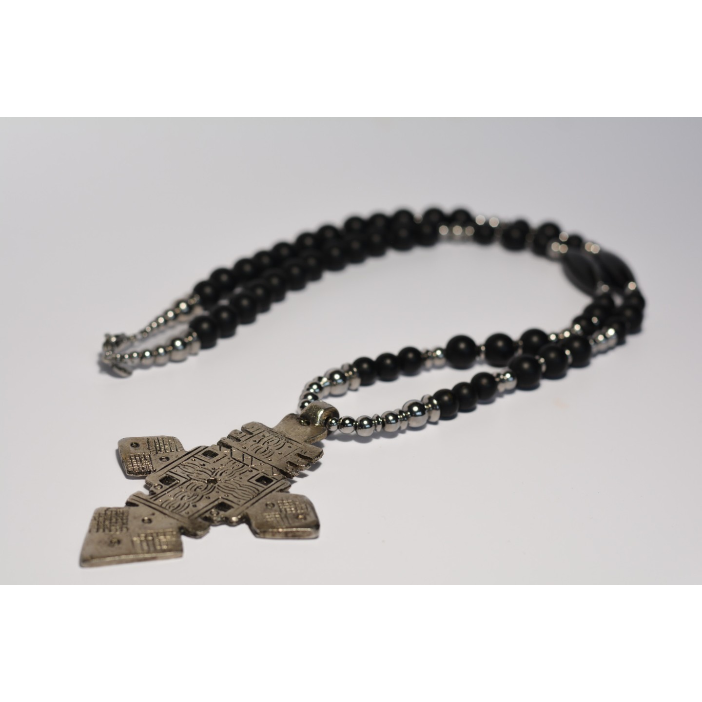 Collier Ethnique Croix Éthiopienne Argent en Onyx Mat