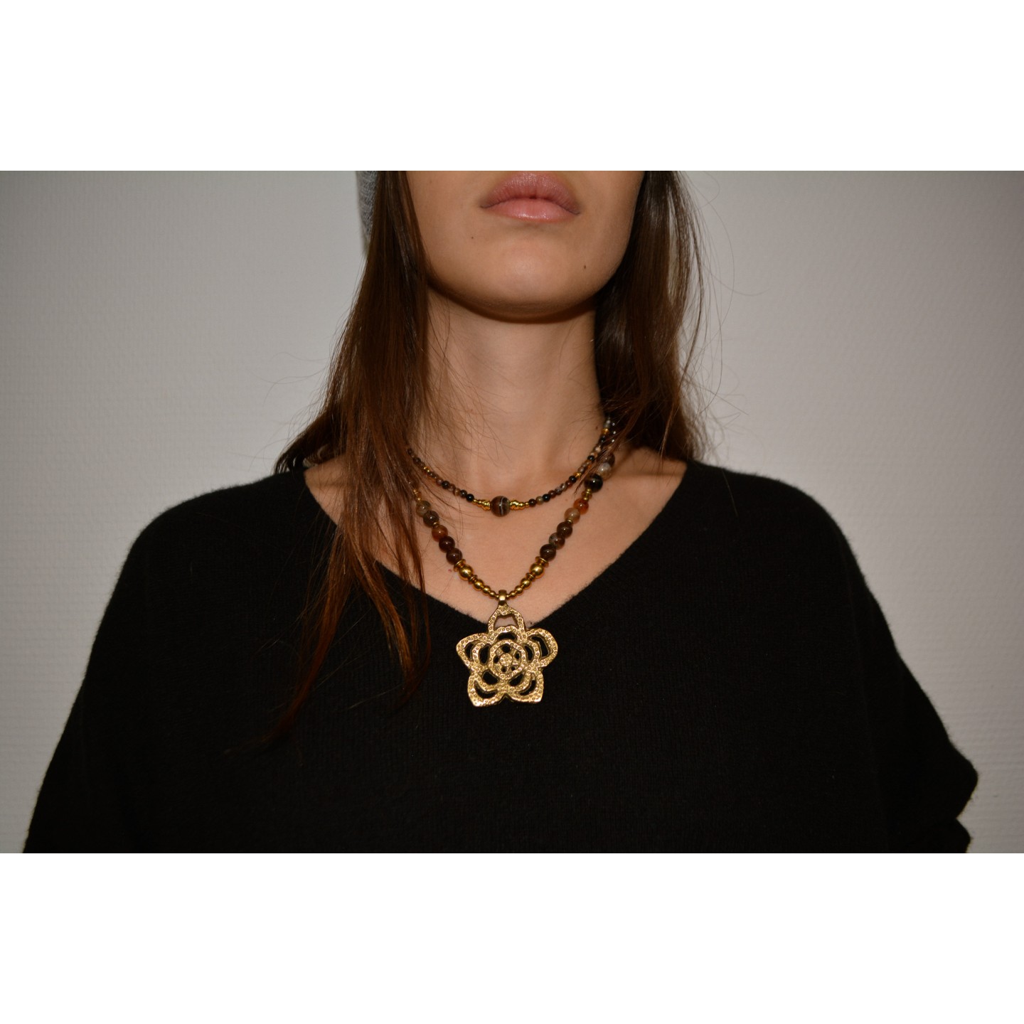 Collection Ethnique Fleur en Agate Marron
