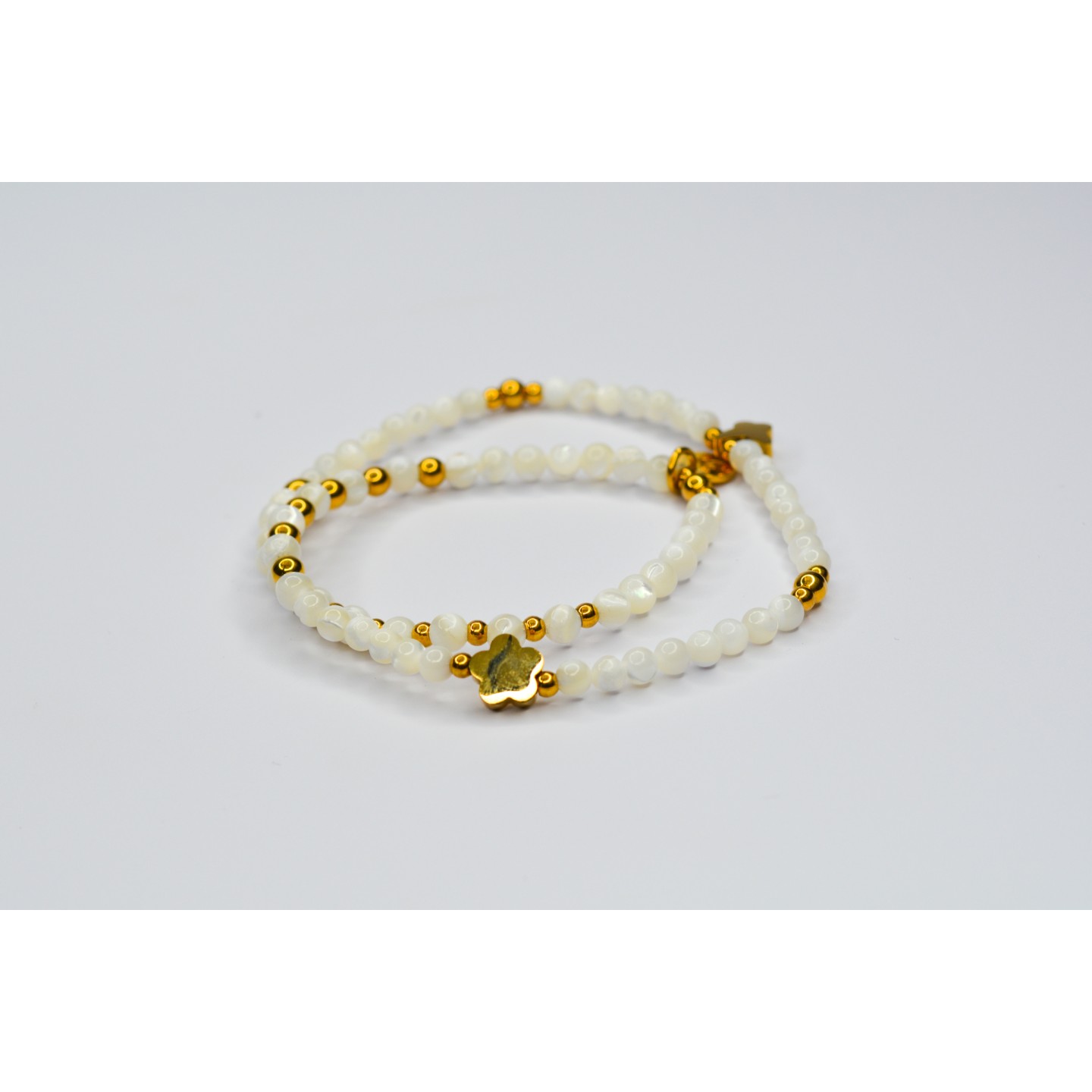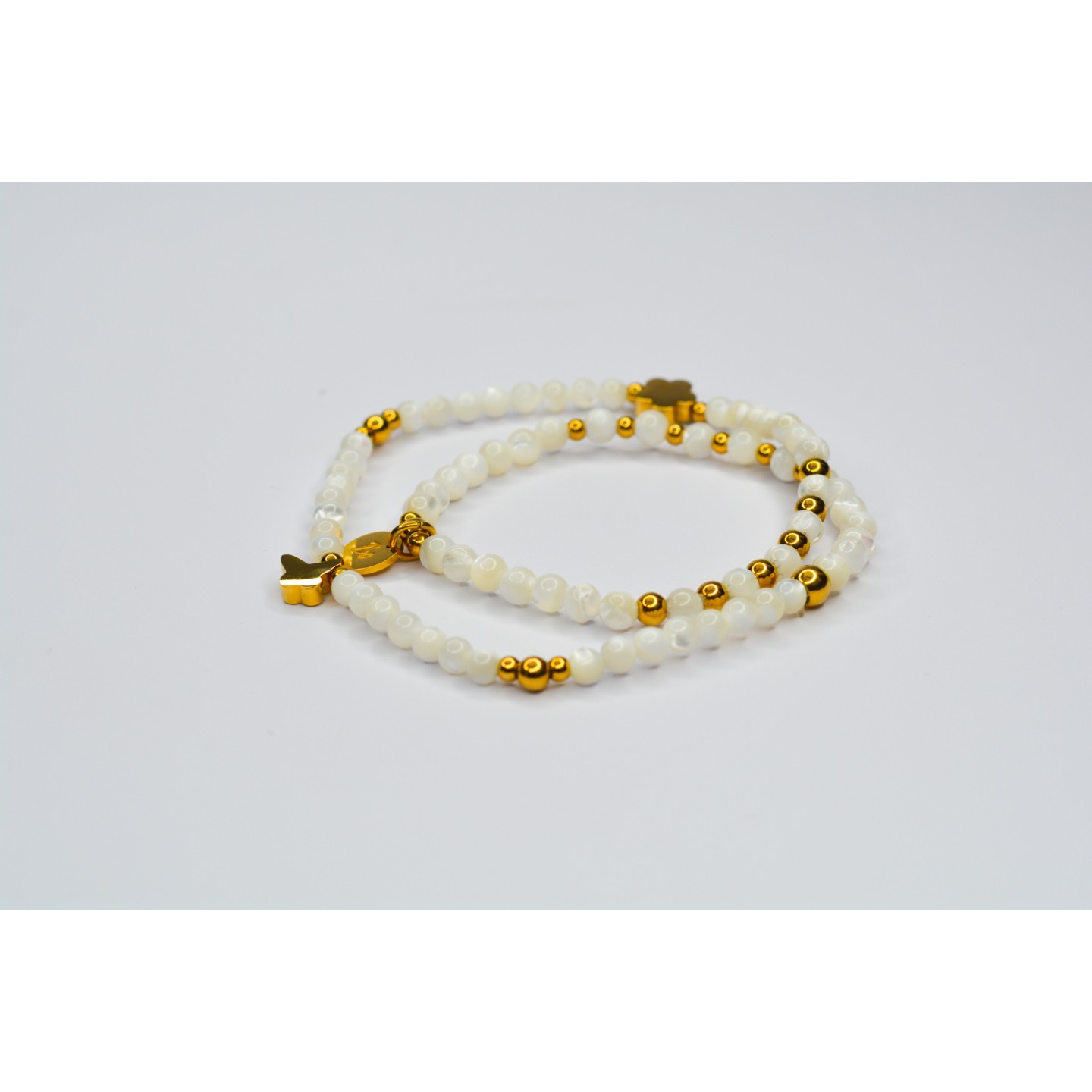 Bracelet LINA double en Perles de coquillage blanche avec motif Fleur et Papillon