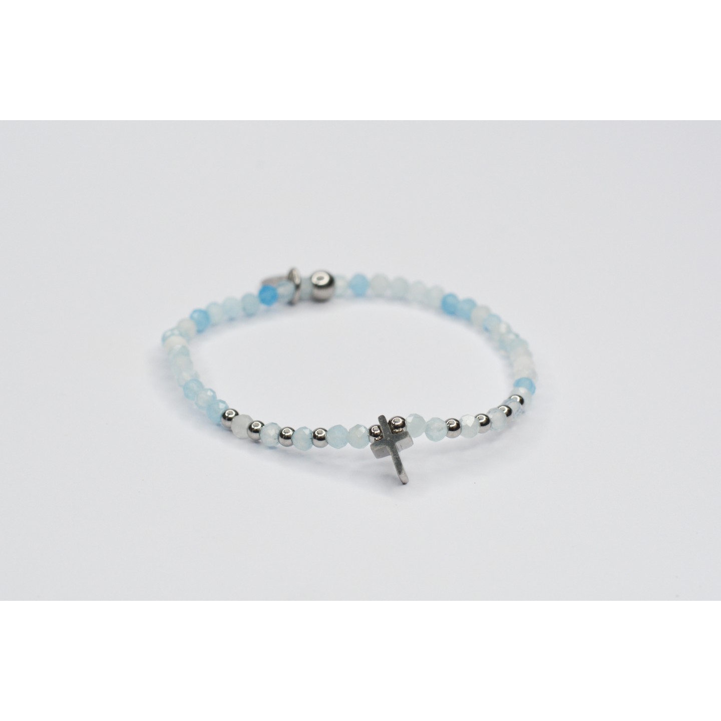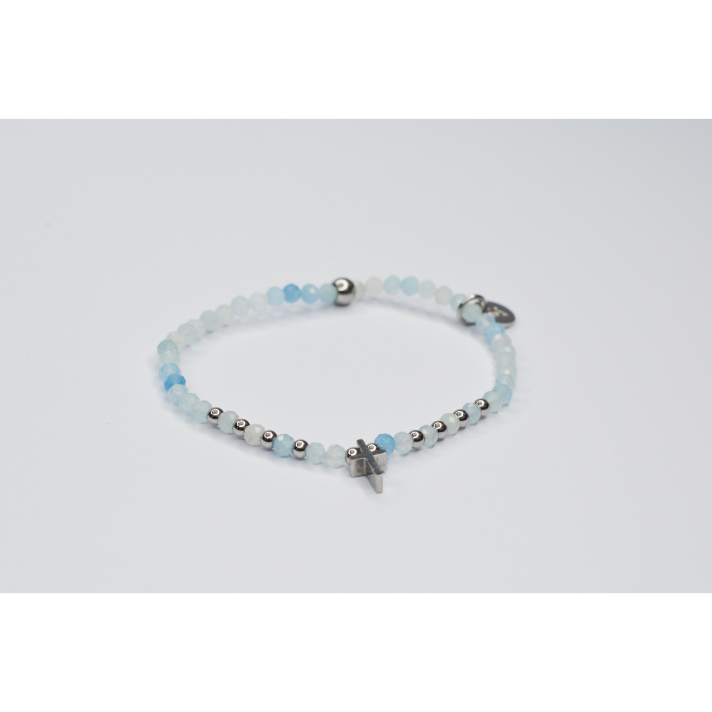 Bracelet LINA simple en Aigue-Marine à facettes avec motif croix
