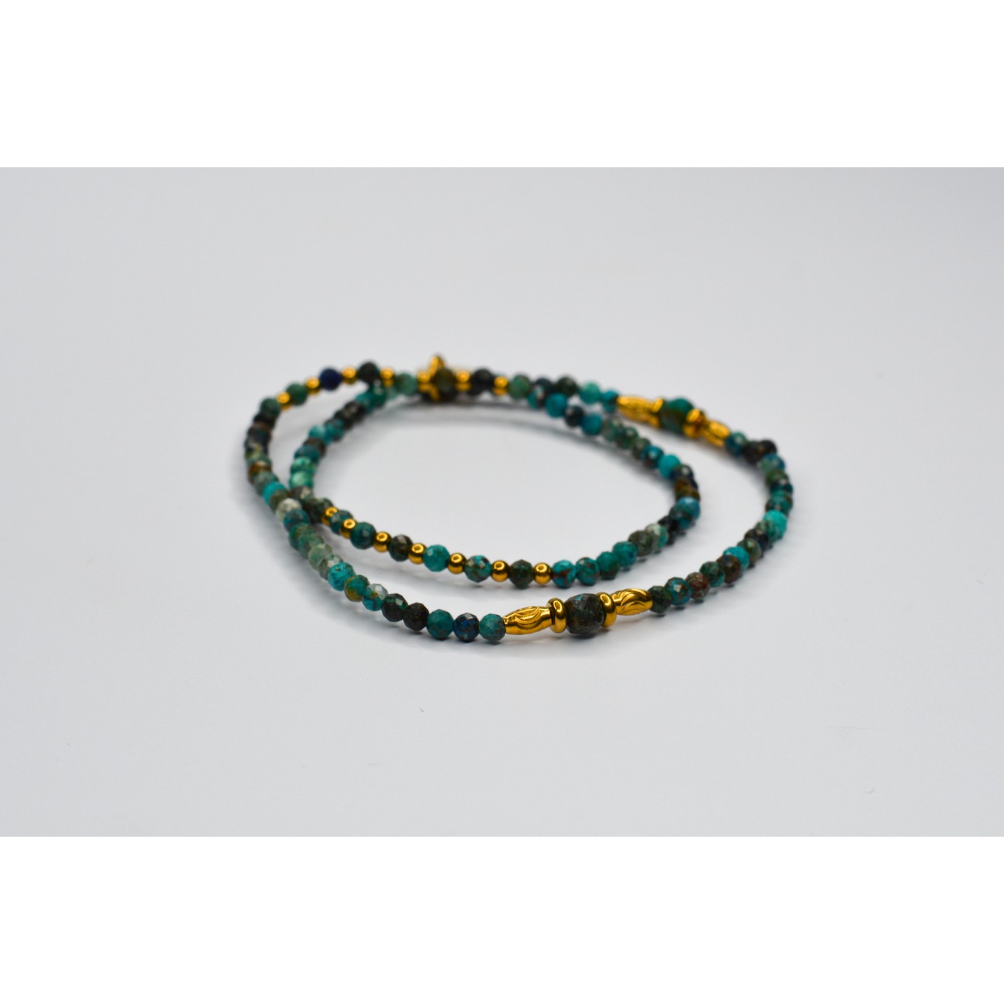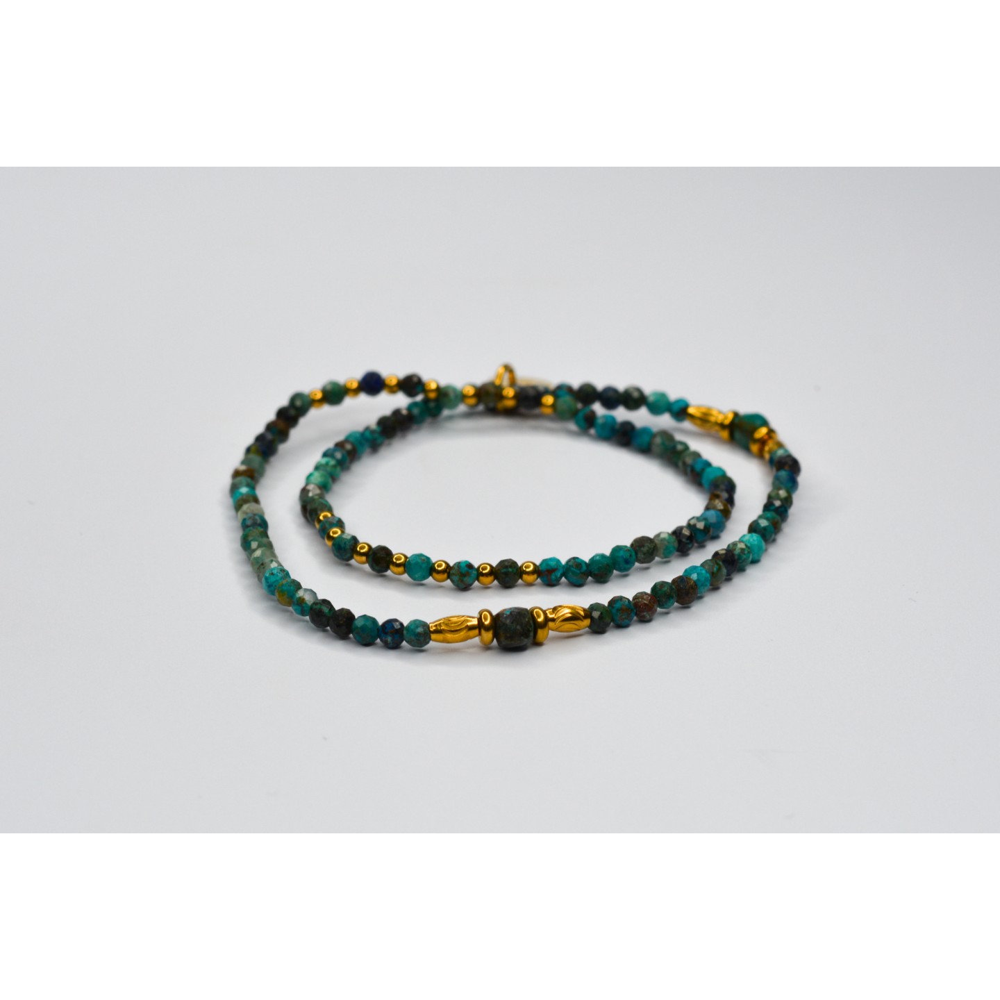Perles naturelles de Chrysocolle à facettes, diamètre 3mm. Perles cubiques en Chrysocolle, diamètre 4mm. Acier inoxydable doré. Taille : 15-17cm