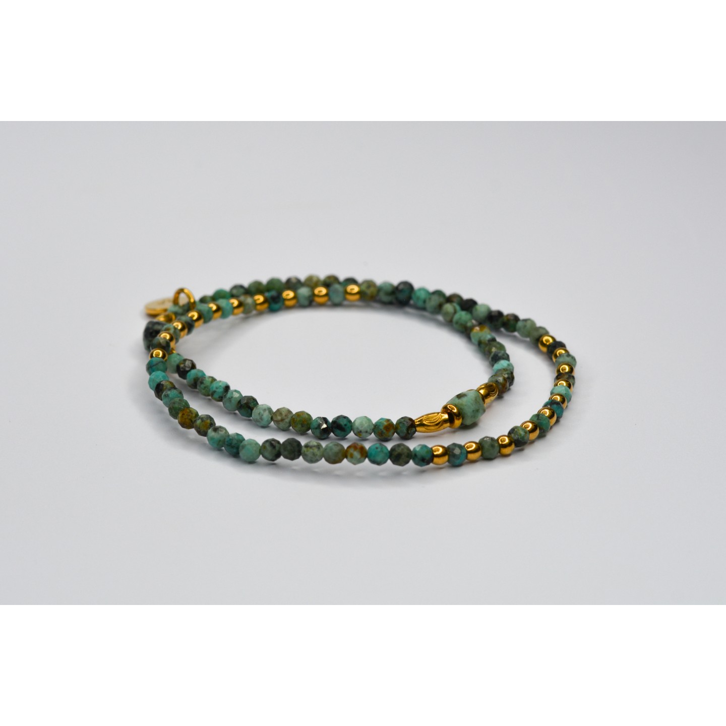 Perles naturelles de Turquoise Africaine à facettes, diamètre 3mm. Perles cubiques en Turquoise Africaine, diamètre 4mm. Acier inoxydable doré. Taille : 15-17cm