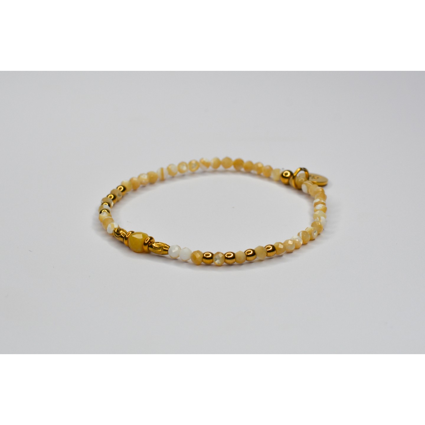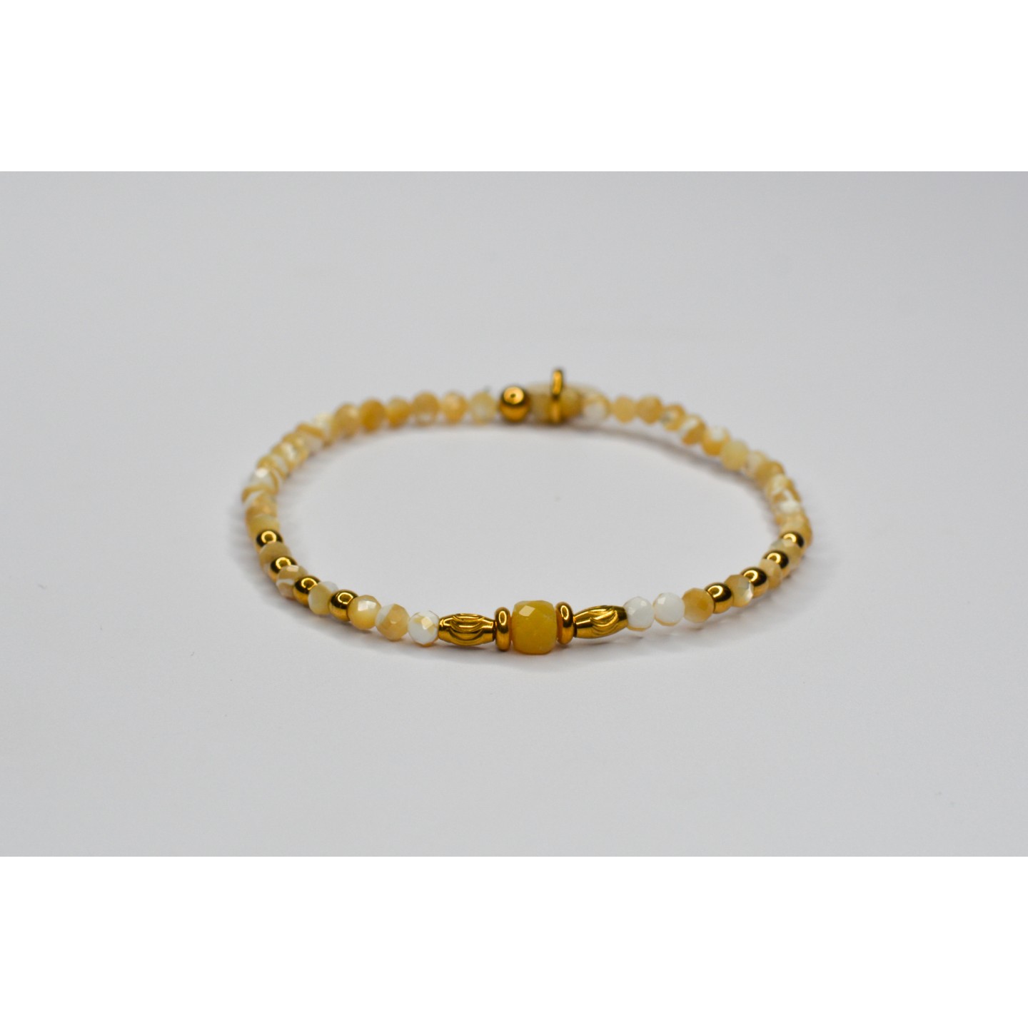 Perles naturelles de Perles de Coquillage à facettes, diamètre 3mm. Perle cubique en Citrine, diamètre 4mm. Acier inoxydable doré. Taille : 15-17cm