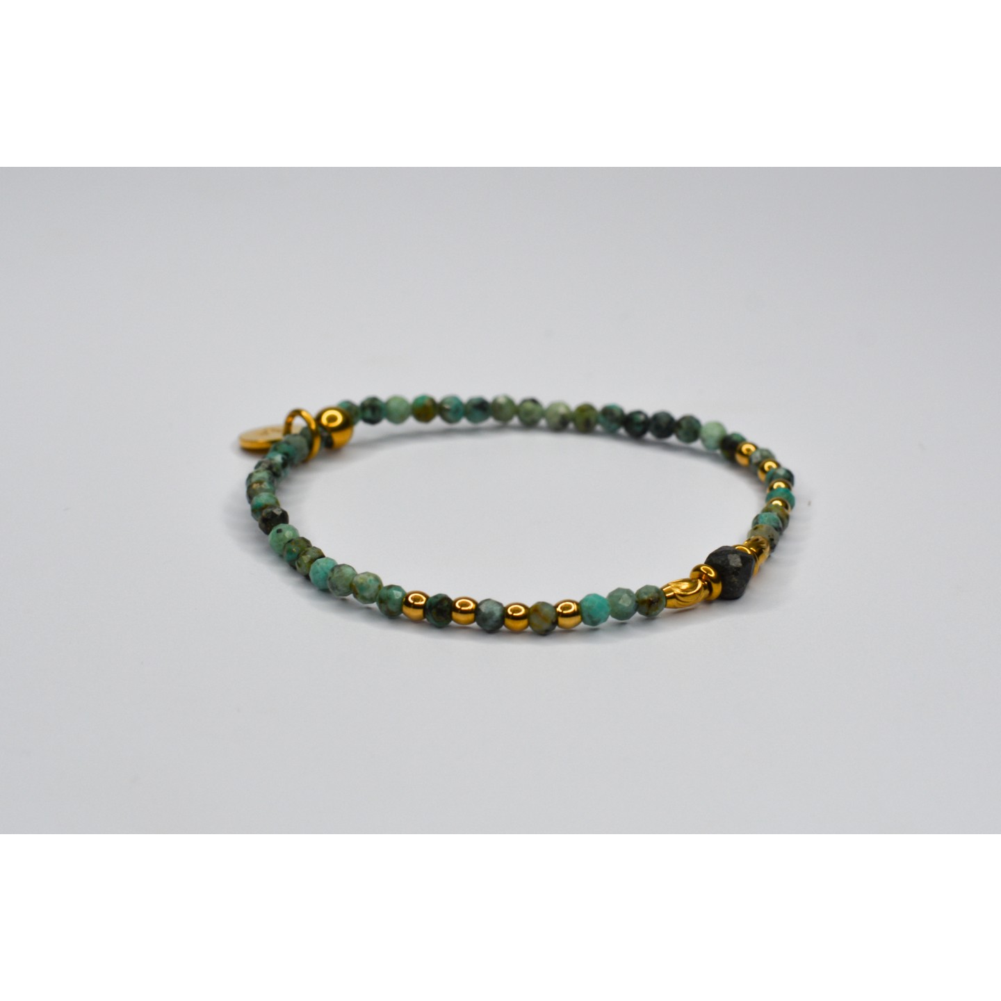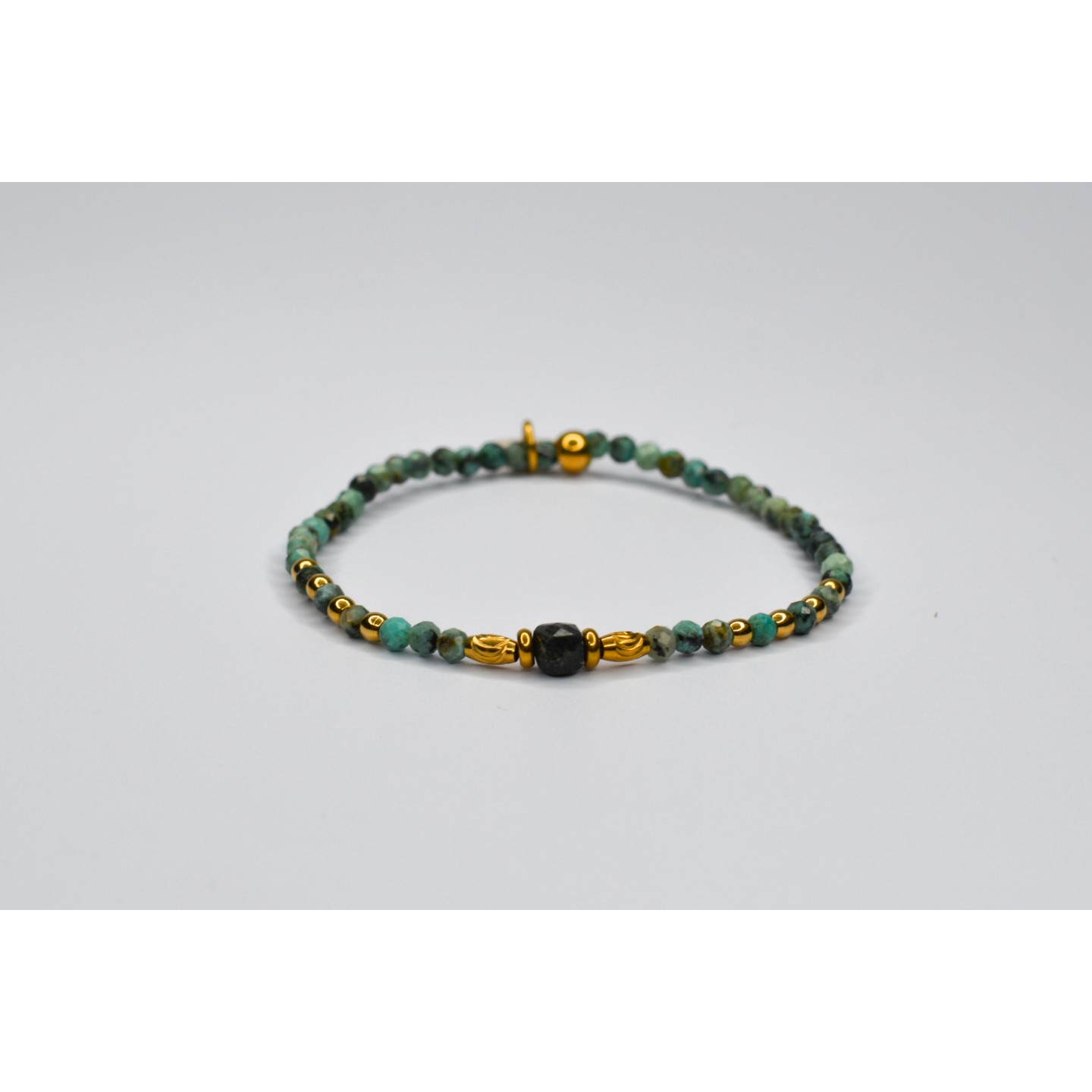 Perles naturelles de Turquoise Africaine à facettes, diamètre 3mm. Perle cubique en Turquoise Africaine, diamètre 4mm. Acier inoxydable doré. Taille : 15-17cm