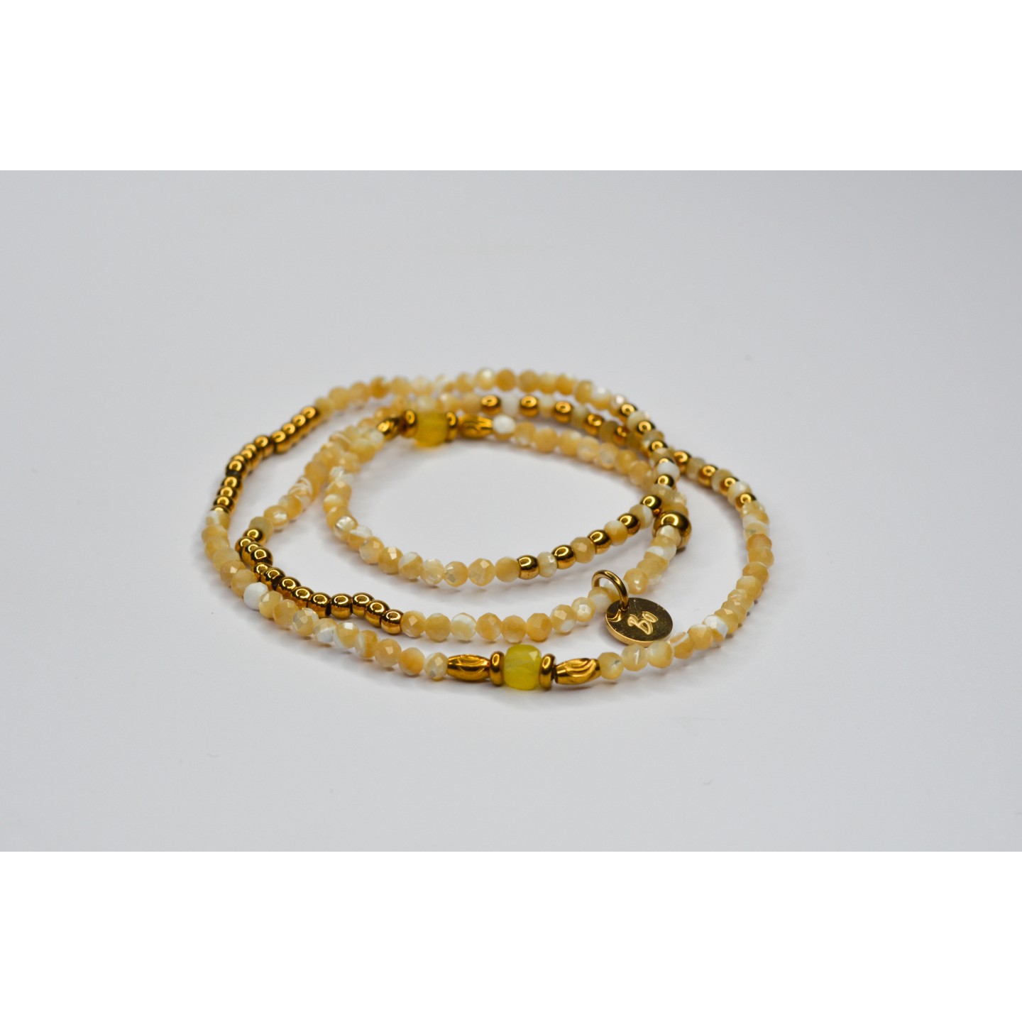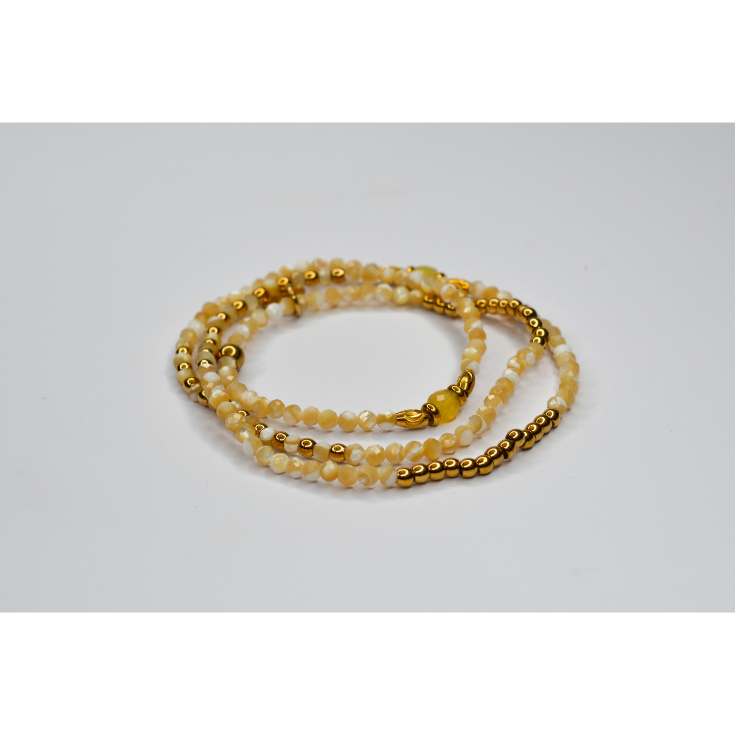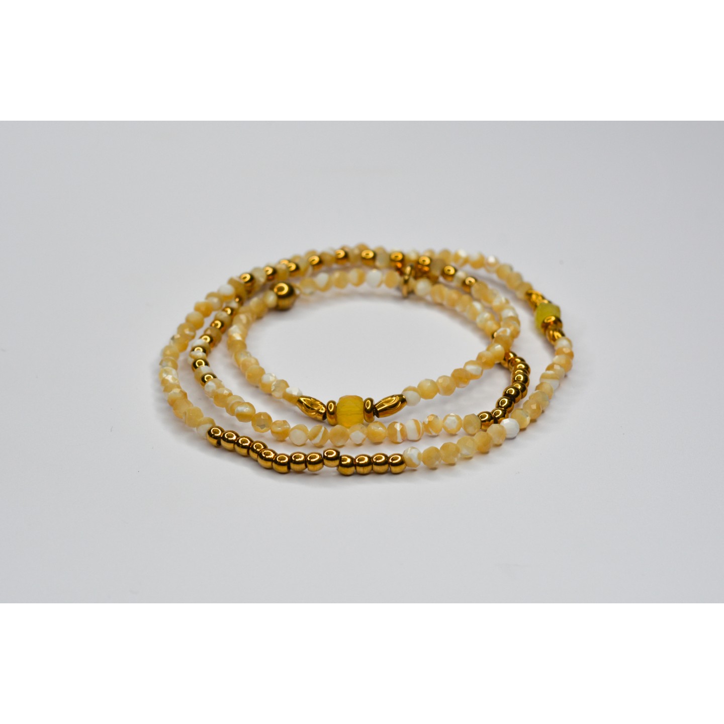 Perles naturelles de Perles de Coquillage à facettes, diamètre 3mm. Perles cubiques en Citrine, diamètre 4mm. Acier inoxydable doré. Taille : 15-17cm