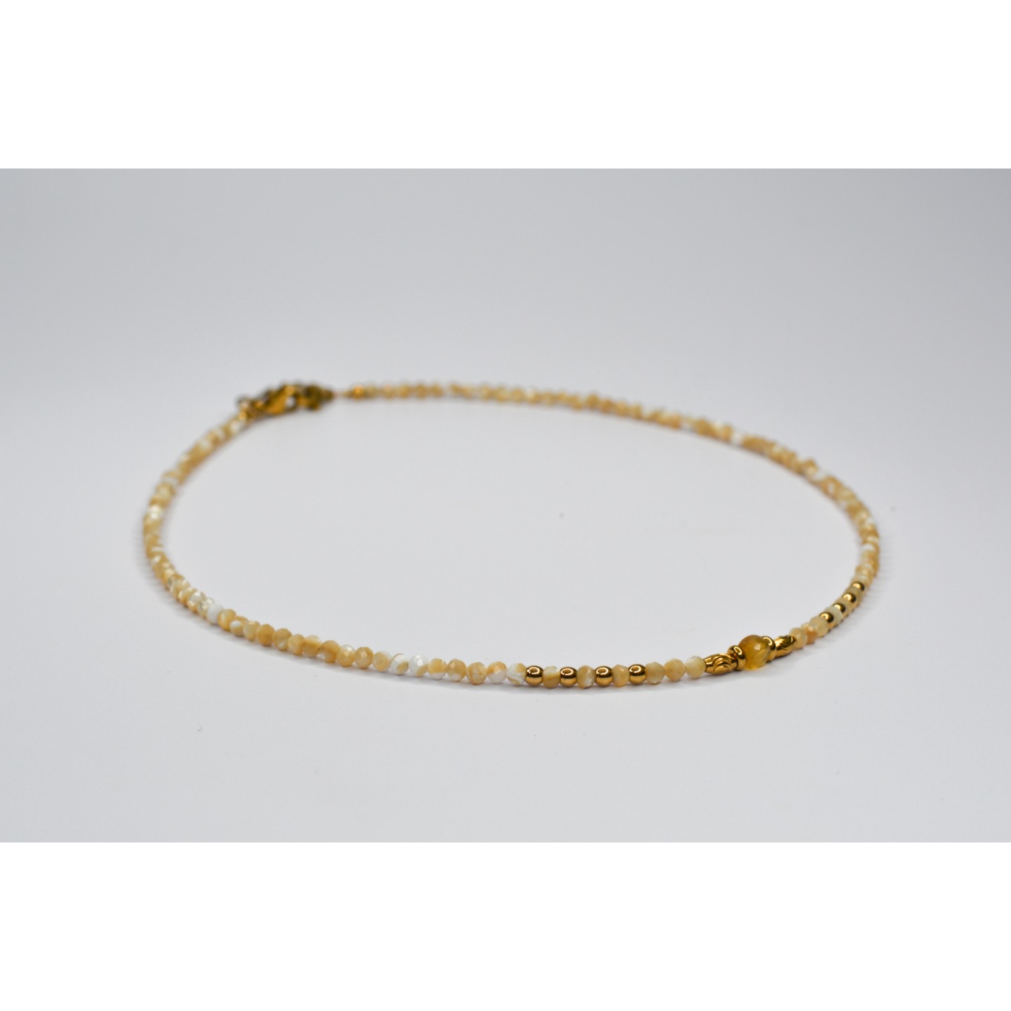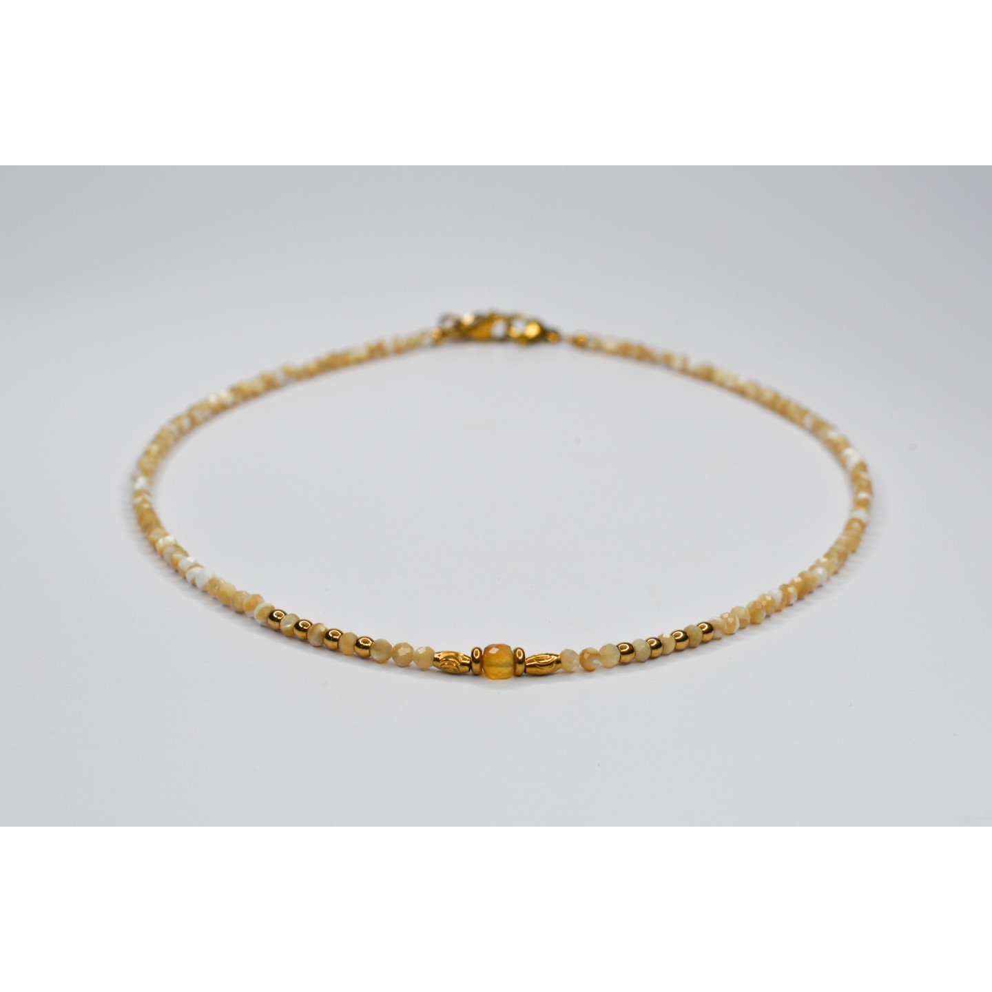 Perles naturelles de Perles de Coquillage à facettes, diamètre 3mm. Perle centrale cubique en Citrine, diamètre 4mm. Taille : 39cm
